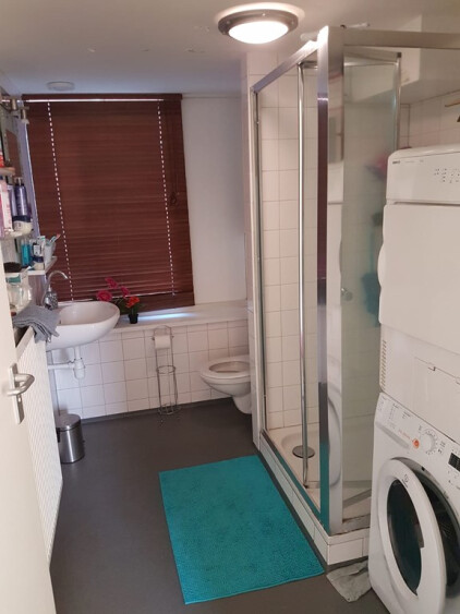 Op de 2e verdieping 2 ruime kamers en badkamer met wastafel en toilet en aansluiting voor wasmachine.